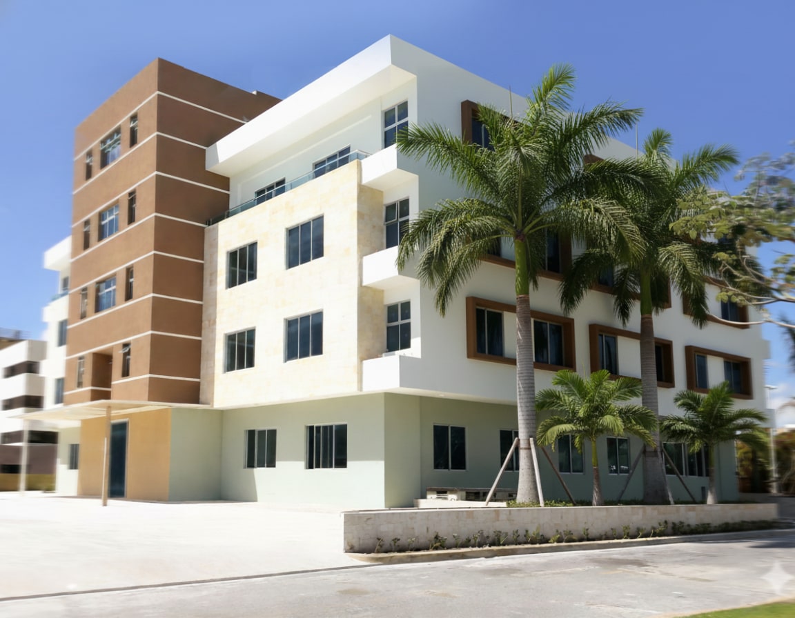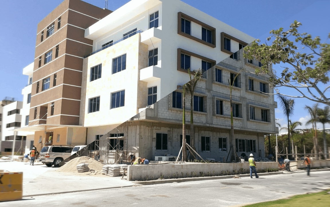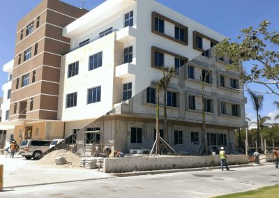 Construcción edificio comercial MARE BLU, ubicado en el Boulevard 25 de noviembre, Punta Cana, Provincia La Altagracia, consta de 6 niveles con parqueo soterrado.